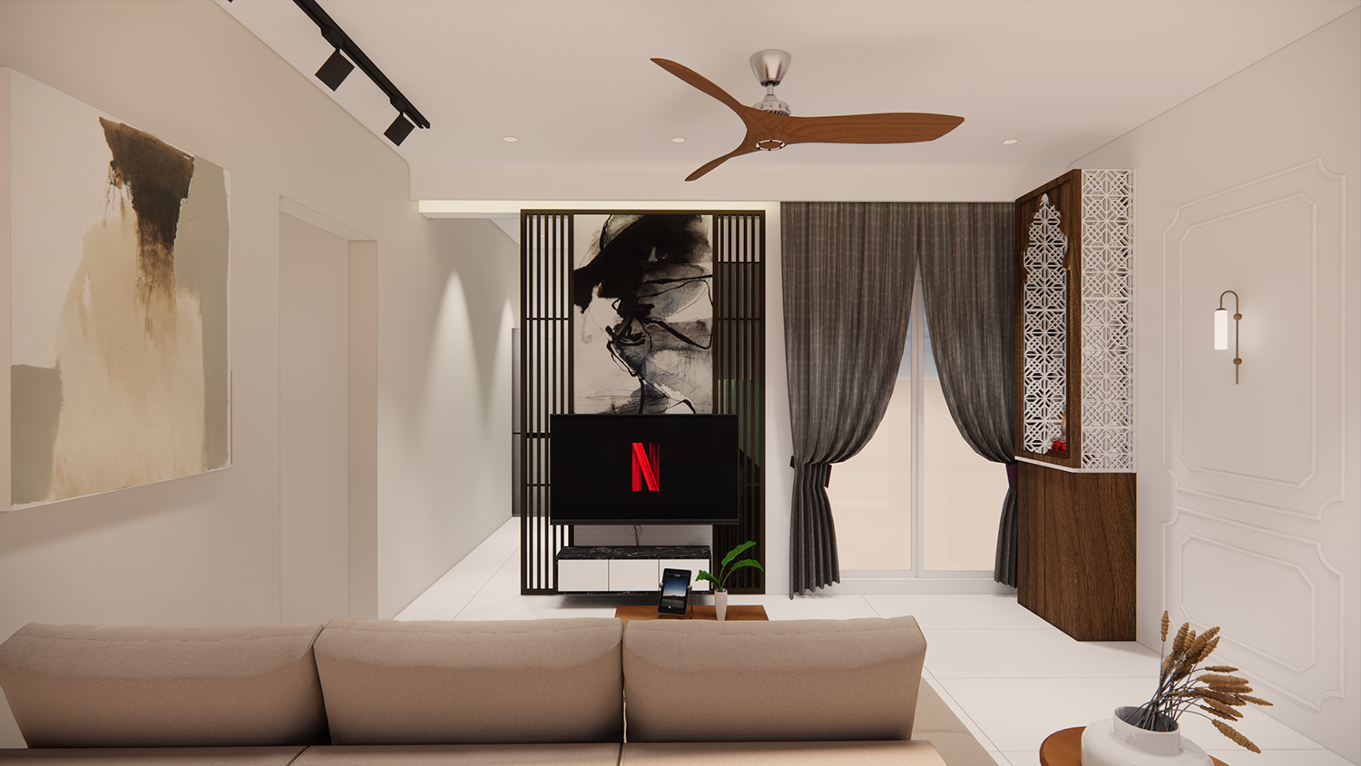 The final design delivered a modern, well-organized flat that radiated comfort and sophistication. Mr. Amol was very satisfied with the outcome, appreciating the seamless blend of practicality and style.