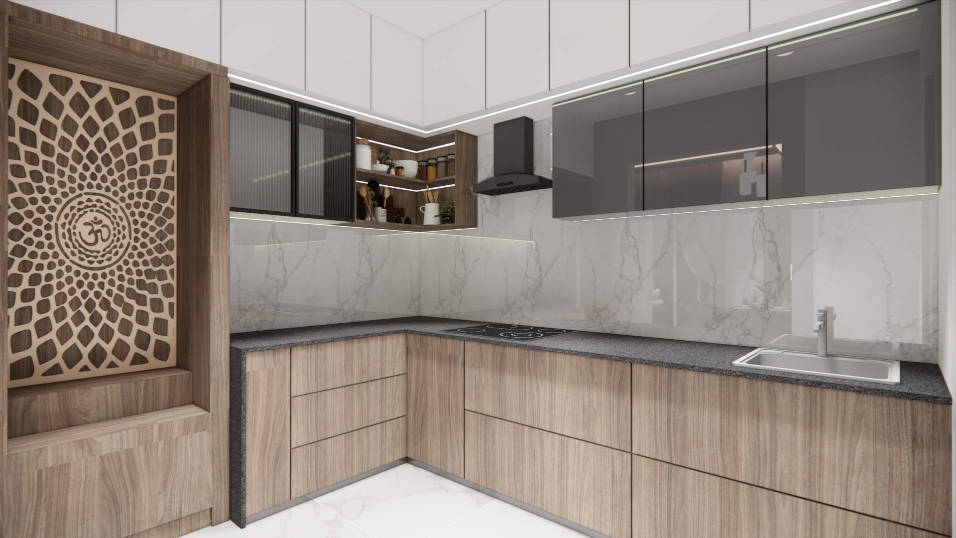 The objective was to design a cozy, minimalistic home that emphasized open layouts and smart storage solutions while reflecting Mr. Atul’s contemporary taste.