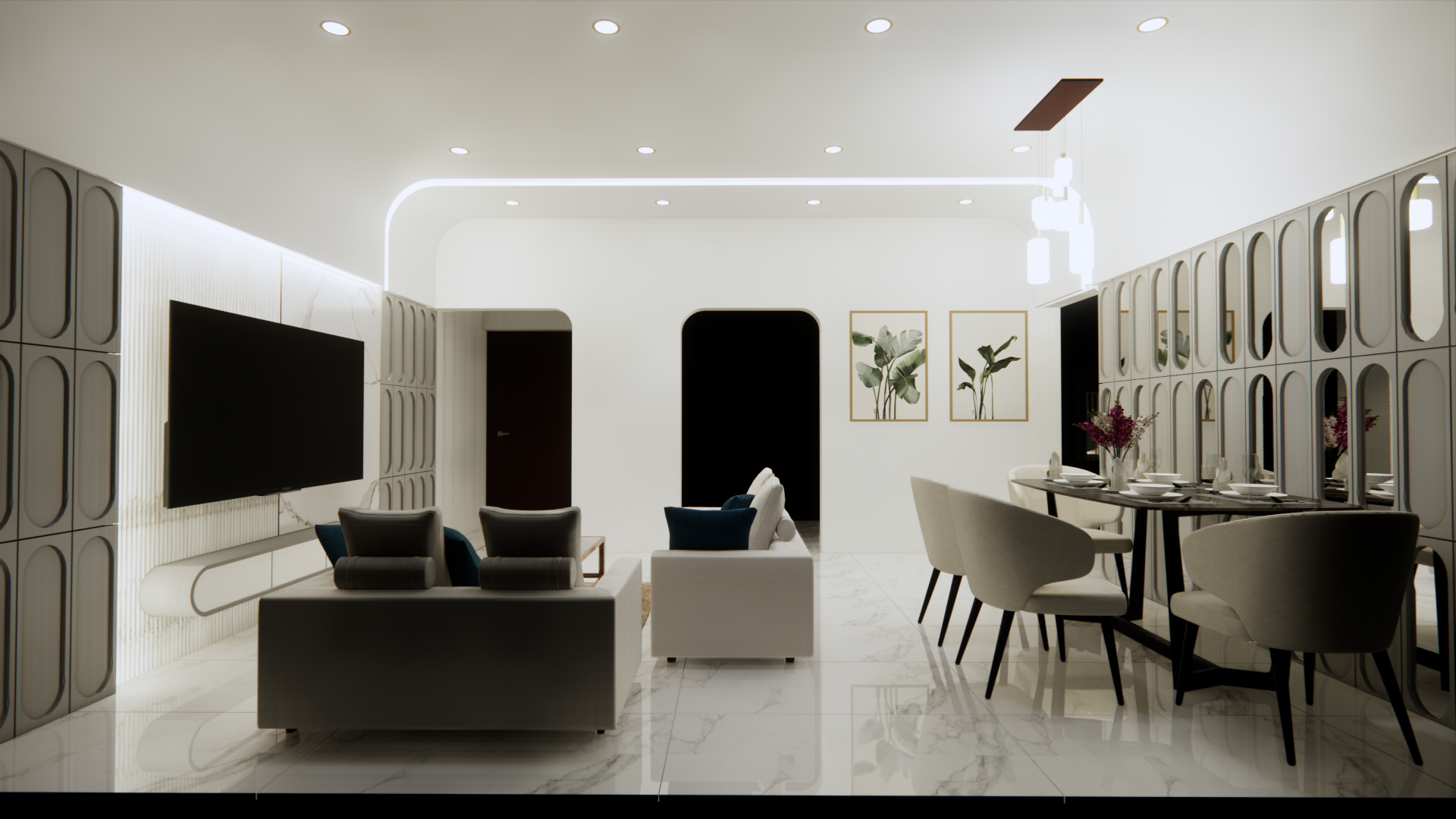 For Mr. Niket, we created a modern and vibrant flat design with a focus on functionality and aesthetic appeal. The project incorporated bright accents, sleek furniture, and an open layout to ensure a fresh, comfortable, and visually engaging living space.