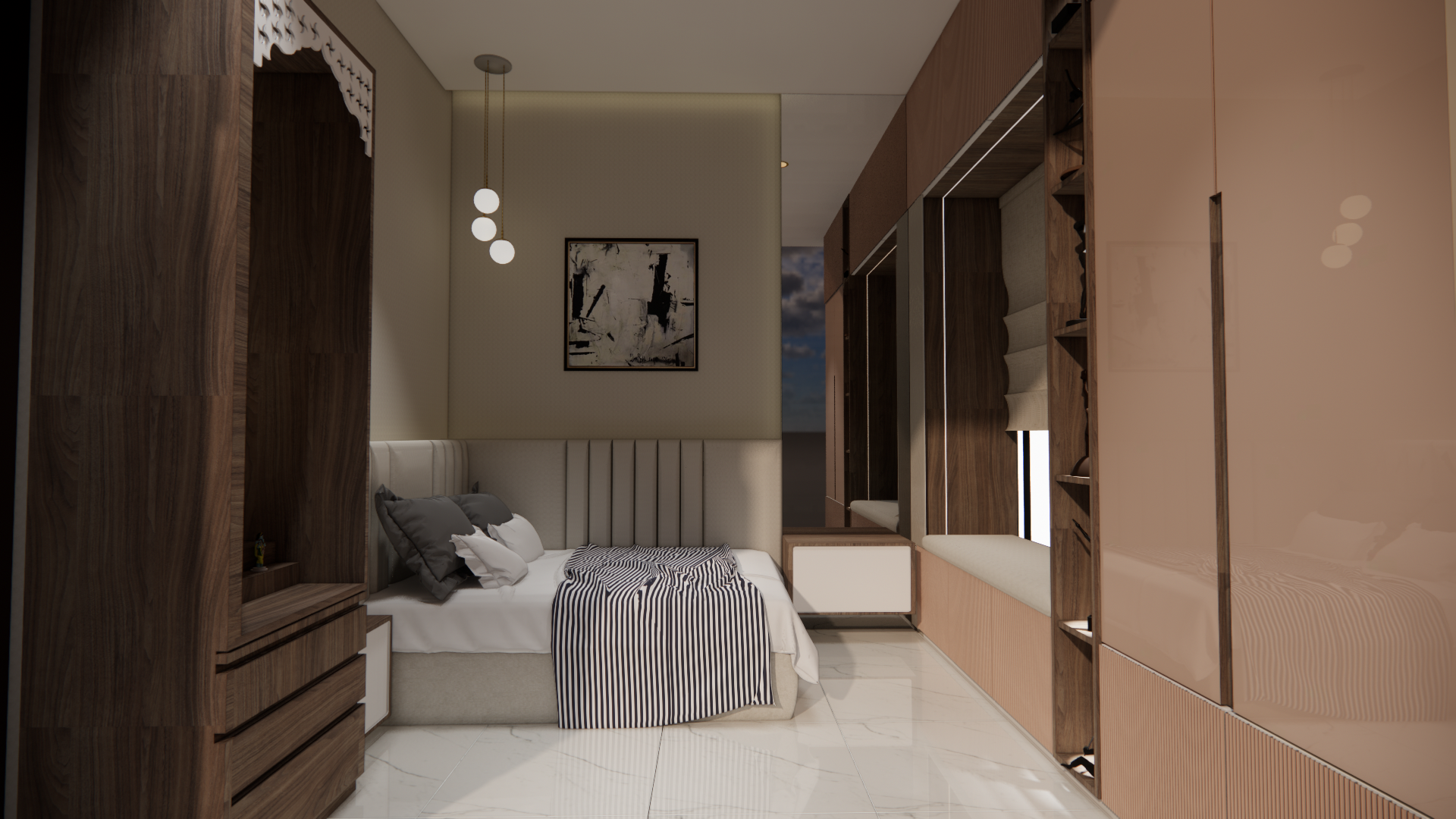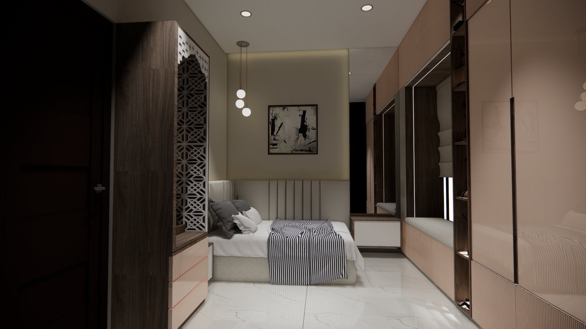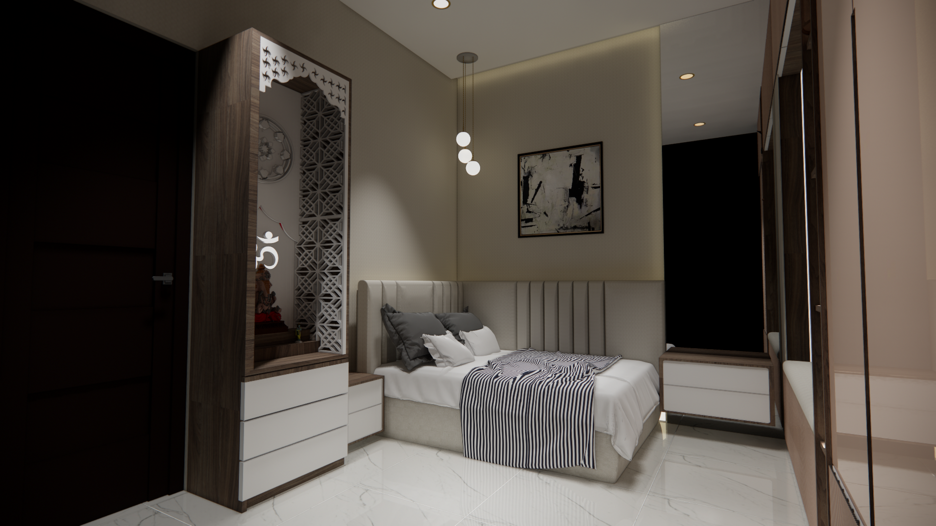 The aim was to design a dynamic, yet cozy home that reflects Mr. Niket’s personality. We focused on blending bold elements with practical solutions, ensuring both style and comfort throughout the space.